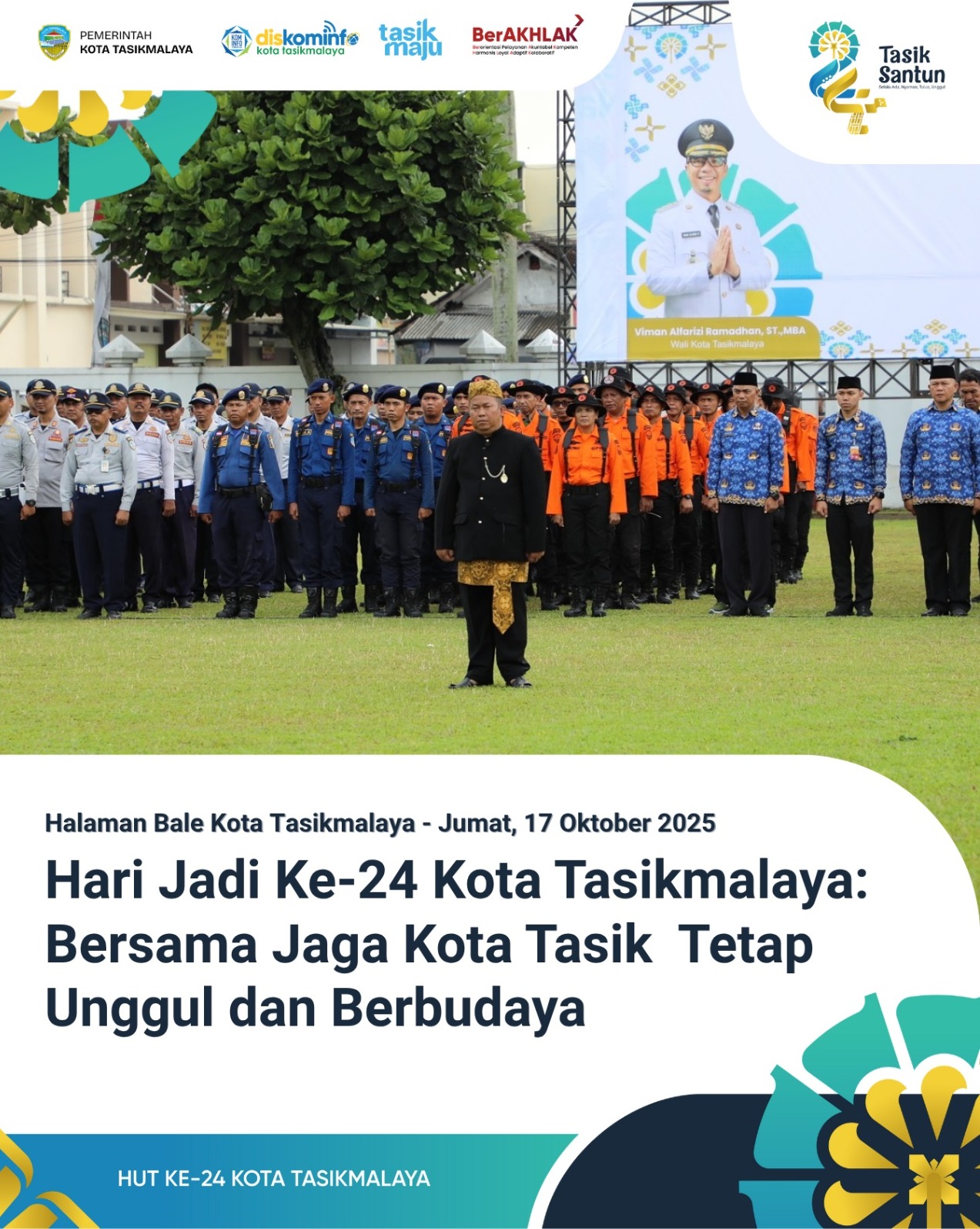 Tasikmalaya-Jum’at, 17 Oktober 2025 , Pemerintah Kota Tasikmalaya menggelar Upacara Hari Jadi ke-24 Kota Tasikmalaya dengan khidmat dan penuh semangat di Lapangan Bale Kota Tasikmalaya.