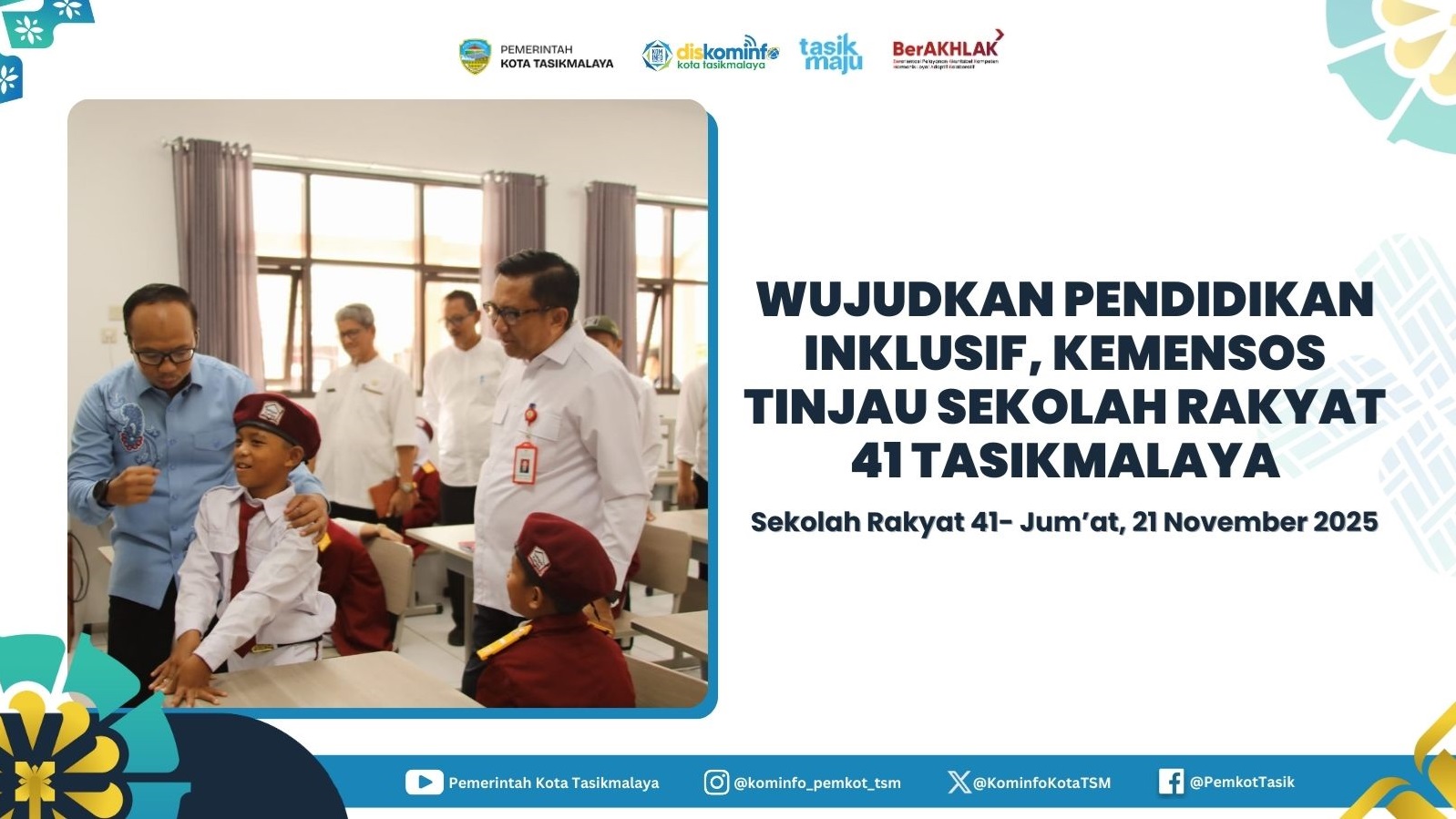 Tasikmalaya - Jumat, 21 November 2025. Pemerintah Kota Tasikmalaya bersama Kementerian Sosial RI melaksanakan peninjauan program Sekolah Rakyat (SR) di Sekolah Rakyat 41 Kota Tasikmalaya, sebagai upaya memastikan layanan pendidikan alternatif bagi masyarakat rentan berjalan optimal.