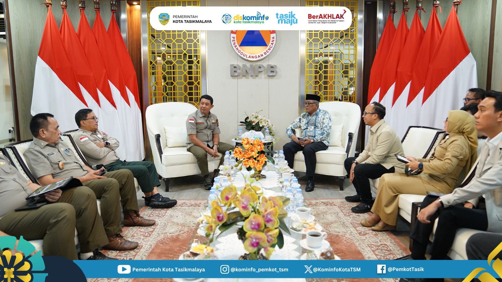 Jakarta, 27 April 2026 – Wali Kota Tasikmalaya melaksanakan kunjungan kerja ke Badan Nasional Penanggulangan Bencana (BNPB) dalam rangka memperkuat koordinasi dan kolaborasi penanggulangan bencana. Dalam kunjungan tersebut, Wali Kota Tasikmalaya diterima secara langsung oleh Kepala BNPB dan melakukan diskusi strategis terkait kondisi kebencanaan di Kota Tasikmalaya.