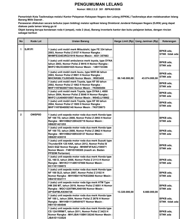 https://lelang.go.id/kpknl/6705b7ba-f64f-11ed-b3e2-5620a0c2ec5a/home?search=motor https://lelang.go.id/kpknl/6705b7ba-f64f-11ed-b3e2-5620a0c2ec5a/detail-auction/f2eb162b-0985-46a1-8b9a-9241ff5a3c25
